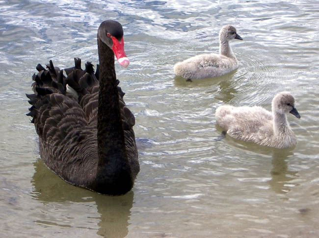 Black-Swan-and-cygnets-2-Lakes-Entrance-VIC